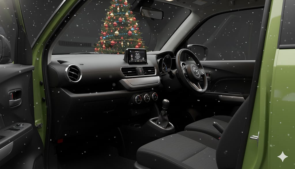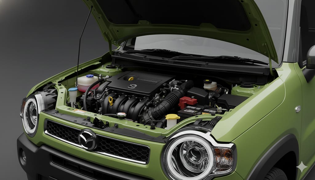 四角いボディ、丸いヘッドライト、樹脂製のフェンダーアーチ。 これらは「機能美」の塊です。 マツダのショールームの、洗練された照明の下に置かれると、 まるで高級なアウトドアギアや、プロ仕様の工具箱のような「本物感」が漂います。 「可愛い」だけじゃない。「使える道具」としての顔。 60代の男性が乗っても決して子供っぽくならない、渋い魅力がそこにはあります。